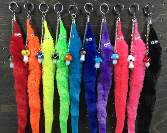 fluffy worm on string