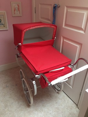 red dolls pram